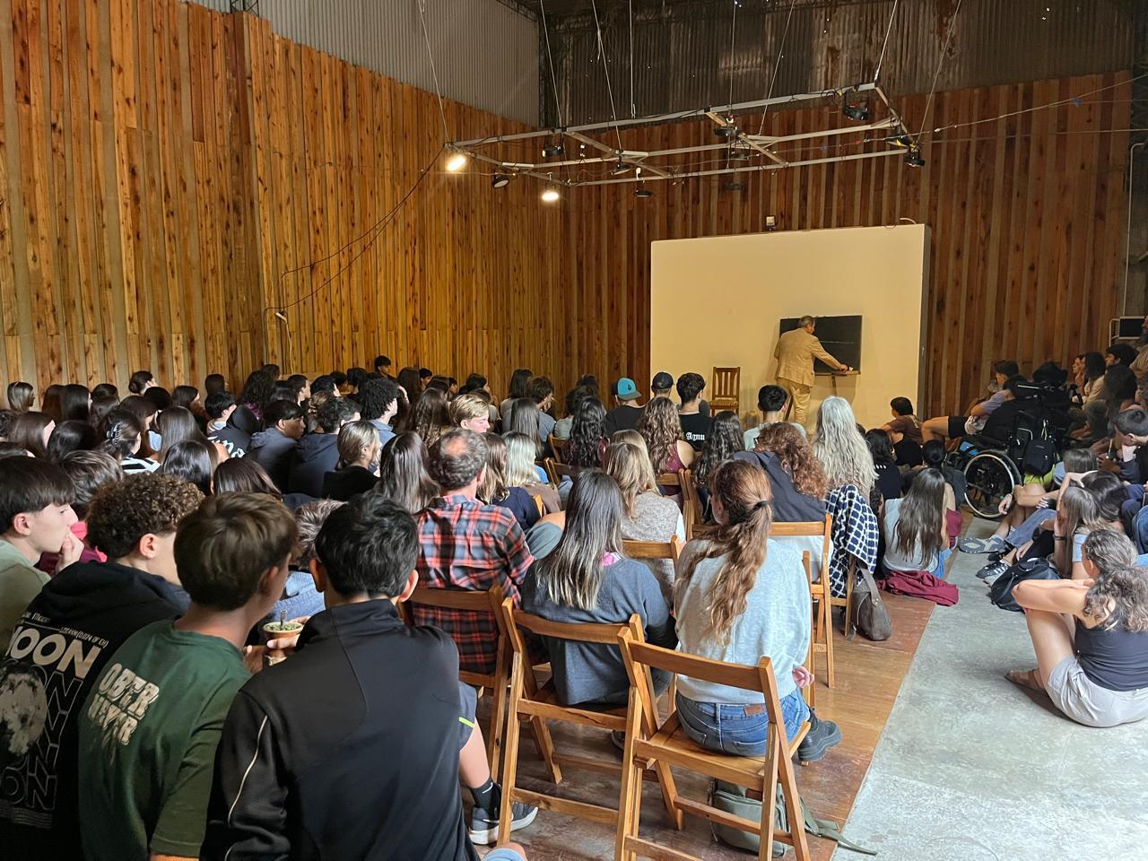 Los jóvenes escucharon con atención y luego participaron en pequeños grupos de conversación junto a estudiantes de las distintas escuelas, generando un intercambio valioso.
